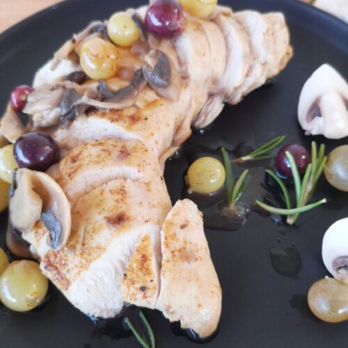 Ajouter le raisin, chauffer et rectifier l’assaisonnement.