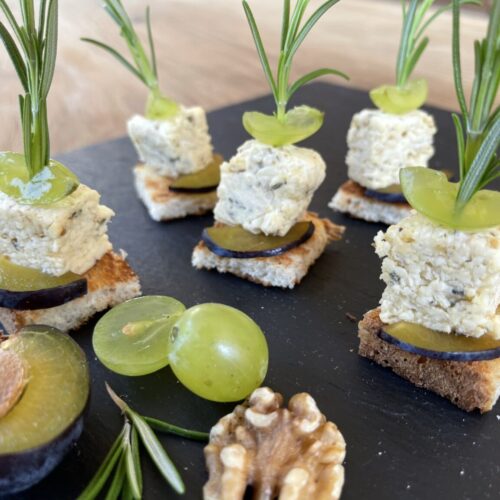 Disposer sur des toasts et accompagner de quelques fruits de saison.