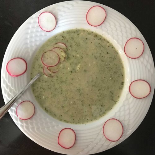 Couper les radis restants en fines tranches et les déposer sur la soupe ou au bord du bol pour la garniture.