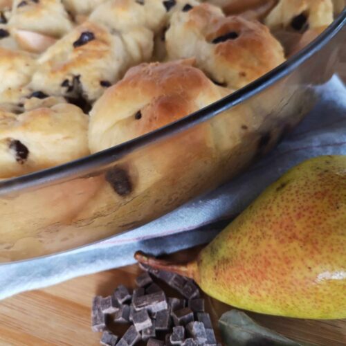 Peler et épépiner 4 poires et les couper en lamelles. Insérer entre les boules.