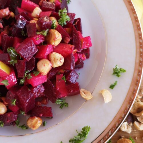 Tartare de bettraves, pommes et noisettes